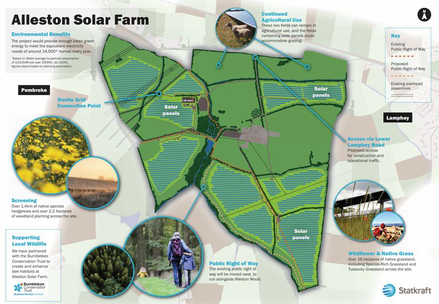 Solar power is a crucial technology to help overcome our energy security and climate challenges. Alleston solar farm will contribute to the delivery of the UK, Welsh Government and Pembrokeshire County Council policy objectives, diversify the energy mix, and facilitate the transition to low carbon energy, whilst decreasing the dependency on fossil fuels.